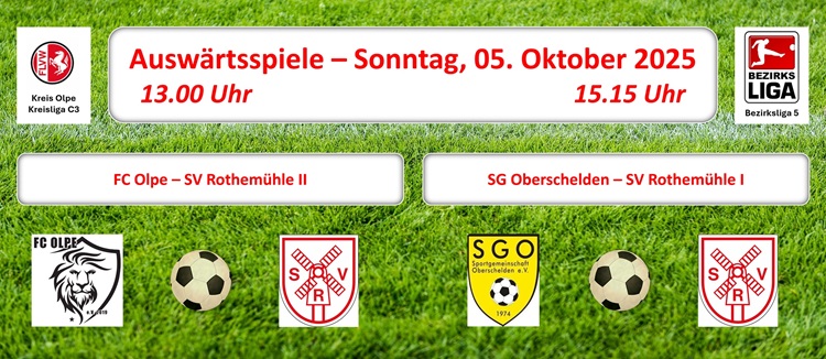 Sonntag: Auswärtsspiele ... ZWEITE beim FC Olpe ... ERSTE bei der SG Oberschelden