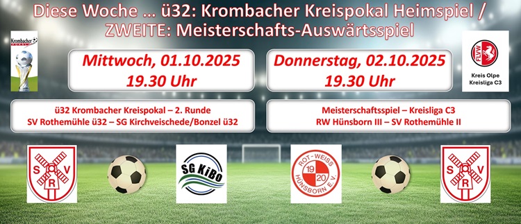 Wochentagsspiele: Mittwoch - ü32 Krombacher Kreispokal // Donnerstag - ZWEITE Meisterschaftsspiel