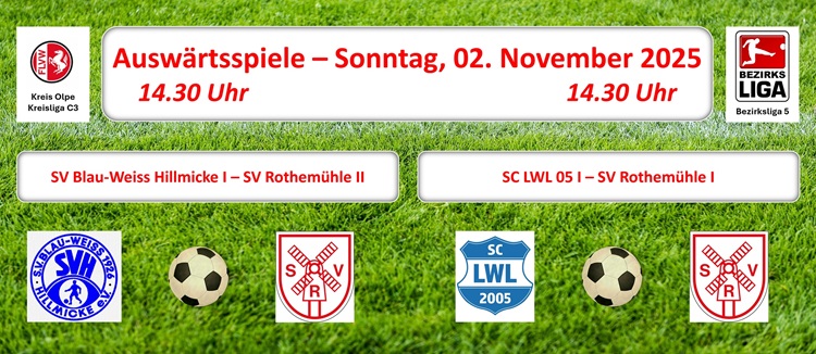 Auswärtsspiele: ZWEITE spielt beim Nachbarn SV Blau-Weiss Hillmicke // ERSTE zu Gast beim SC LWL 05