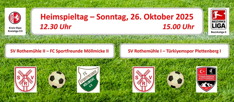 ZWEITE und ERSTE mit Heimspielen gegen FC Möllmicke II bzw. Türkiyemspor Plettenberg I