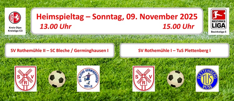 Letzter Heimspieltag der Hinrunde: ZWEITE gegen SC Bleche/Germinghausen I // ERSTE hat TuS Plettenberg zu Gast